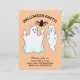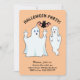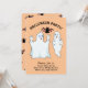 Bonito convite para fantasmas de Halloween e Munchy. Há um padrão de morcegos no verso. Todos os textos e números estão prontos para serem personalizados.