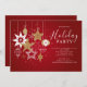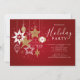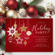 Convide amigos, família ou colegas de trabalho para comemorar suas festas de feriado com este convite elegante para festas de feriado vermelho e ouro. Com ouro festivo e estrelas brancas, ornamentos e flocos de neve em um rico fundo vermelho, esse design eterno capta perfeitamente o calor e brilho da estação. Quer você esteja hospedando um janto de Natal, festas de férias de escritório ou reunião festiva de coquetéis, este convite personalizável adiciona o toque sazonal perfeito. Impresso em papel de alta qualidade com cores vibrantes e um acabamento profissional, é uma bela maneira de compartilhar sua alegria de férias. Personalize com seus detalhes de evento, incluindo data, hora, local, informações de RSVP e muito mais, para criar um convite tão exclusivo quanto a celebração de seu feriado.