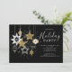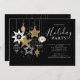 Faça sua celebração de feriado brilhar com este convite de festa de Natal preto e ouro. Concebida com estrelas de ouro, brancas e metálicas, ousadas, e ornamentos contra um fundo preto elegante, esta elegante design é perfeita para encontros de Natal, festas de escritório, celebrações de Ano Novo ou noites festivas de cocktail. A tipografia moderna, aliada a ícones glamourosos de férias, cria um convite eterno que se sente tanto festivo quanto sofisticado. Totalmente personalizável com seus detalhes de eventos, este convite é impresso em papel premium para um acabamento luxuoso que seus convidados irão adorar. Ideal para festas de férias com um tema moderno ou glamouroso, esta design adiciona o toque perfeito de brilho ao seu evento sazonal.