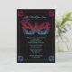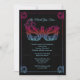 Um convite lindo com um fundo preto e uma máscara sofisticada e delicada em vermelho e azul. Perfeito como convite para uma festa de Mardi Gras ou celebração de aniversário com máscaras. (Pix). <br/><br/>O cartão é fácil de personalizar com sua redação, fonte e cor da fonte.<br/><br/>Não é exatamente o que você está procurando? Todos os nossos produtos podem ser personalizados para atender às suas necessidades sem nenhum custo adicional.<br/><br/>Basta entrar em contato conosco em askcottonlamb@gmail.com.<br/><br/>Produtos coordenados disponíveis: Basta perguntar!