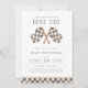 Convite para festa de 1º aniversário da Fast ONE Racing Flags, convite de primeiro aniversário para festa de carro de corrida vintage