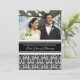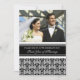 Cartão de convite de festa de primeiro aniversário de casamento personalizado com foto em padrão damasco floral clássico preto e branco elegante, delicado e moderno. Personalizável com os detalhes da sua festa e sua própria foto.