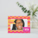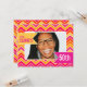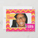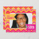 Chevron zigzag cor-de-rosa forte brilhante, cor de laranja, branca, vermelha e amarela do 50.o convite de aniversário. Convidado gráfico brilhante personalize com sua própria idade de aniversário, detalhes da festa e fotos da sua aniversariante. Design exclusivo de Sarah Trett.