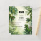 Um convite para comemorar o aniversário de um menino. Uma selva, a floresta tropical e dois dinossauros, Tyrannosaurus. Personalize e adicione um nome e detalhes da parte. 1 folha = 1 convite impresso de borda a borda.