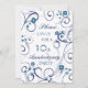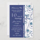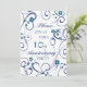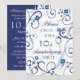 Cartão de convite para festa de aniversário de 10 anos de casamento em padrão floral branco e azul elegante, delicado e sofisticado com redemoinhos divertidos. Personalizável com os detalhes da sua festa.