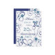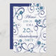 Convite para festa de aniversário de 20 anos de casamento em elegante padrão floral branco e azul, delicado e sofisticado com redemoinhos divertidos. Personalizável com os detalhes da sua festa.