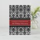 Convite de cartão de festa de aniversário de casamento de 20 anos em elegante padrão damasco floral moderno vermelho-crimson, preto e branco, delicado e contemporâneo. Personalizável com os detalhes da sua festa.