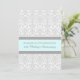 Cartão de convite para festa de aniversário de casamento de 25 anos em azul turquesa claro elegante, cinza e branco padrão vintage damasco floral clássico romântico, delicado e contemporâneo. Personalizável com os detalhes da sua festa.