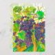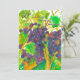 Um convite de festa de aniversário de casamento com frutas atraentes, apresentando uvas na videira em um vinhedo pintado com aquarela em tons profundos de roxo, azul e burgundy. Você pode personalizar o texto para atender às suas necessidades.
