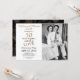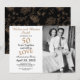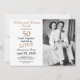 Um belo convite de foto para o aniversário de 50 anos de casamento que você pode personalizar e enviar para a celebração da festa de aniversário de 50 anos juntos, feito com tipografia popular. Substitua a foto de amostra pela sua. As cores do texto dourado e preto podem ser alteradas usando o menu de edição. Um padrão de flor preta e dourada adorna a parte de trás do cartão. Outras cores e padrões estão disponíveis.
