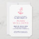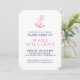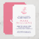 Ilustração elegante da âncora náutica rosa sobre fundo personalizável branco, modelo de convite de aniversário com cores invertidas de rosa e branco no lado oposto