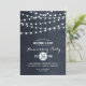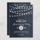 Design de convite de aniversário de casamento moderno e sofisticado para o verão, com luzes de corda simples e elegantes penduradas no topo e uma mistura de fontes modernas e de caligrafia em um fundo de textura de aquarela falsa impressa. Um design simples e elegante, perfeito para o verão! Clique no botão PERSONALIZAR para personalizar as fontes, mover o texto e criar um design único e exclusivo.