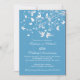 Convite de aniversário de casamento de pássaros do amor moderno e elegante apresenta um casal de pássaros do amor com um galho de árvore adornado com borboletas e corações sobre um fundo de listras azuis-turquesa. Belo para uma celebração de aniversário de casamento de 25, 30, 40, 45, 50 ou 60 anos. Disponível em nossa loja em uma grande variedade de opções de cores modernas e elegantes