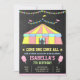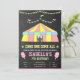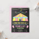 Encontrem seus hóspedes com este convite de aniversário do tema do carnaval que apresenta uma tenda de circo e doces cor-de-rosa com tipografia pastel contra fundo de quadro. Basta adicionar os detalhes do seu evento neste modelo fácil de usar para torná-lo um convite de tipo único. Sacudir a placa por cima para revelar um padrão de listras cor-de-rosa e brancas na parte traseira da placa.