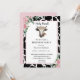 Crianças Bonitas Vêm Convite de Aniversário com impressão de vaca na frente e pontos cor-de-rosa e brancos nas costas. Um convite divertido que seu filho certamente ama. Convite de excelente de aniversário para uma garota amante fazenda.