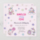 Jogue uma adorável festa de aniversário de arco-íris unicórnio com este belo convite de aniversário para meninas rosa! Este modelo editável e imprimível está disponível como download digital e apresenta unicórnios, estrelas e arco-íris.