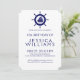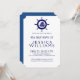 Ilustração azul eslegante da roda náutica do barco sobre fundo personalizável azul-marinho, modelo convite de aniversário com cores invertidas de um lado