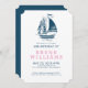 Modelo de convite de aniversário personalizável para ilustração de barco náutico tribal azul-marinho elegante.
