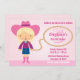 Este convite de aniversário de uma vaqueira rosa, 5x7, tem uma vaquinha loira segurando um lasso. Você pode personalizar facilmente as informações da sua parte à direita. Gráficos do Stockberry Studio em Mygrafico