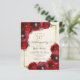 Este elegante 50º convite de aniversário apresenta rosas vermelhas de aquarela com verde com borda falsa de ouro e fundo. Personalize todos os detalhes do seu partido na caligrafia moderna.