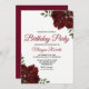 Convite para Festa de aniversário Romântica de Rosa vermelha de Borgonha Consulte coleção correspondente no repositório