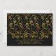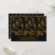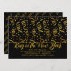 Convite de modelo para festa de Ano Novo preto e dourado. Confetes e serpentinas em tons dourados caem sobre o topo deste convite horizontal. “Celebre o Ano Novo” é o texto grande em estilo de fonte moderna e giratória. Todas as informações da festa são impressas em quatro linhas abaixo do texto grande. Os números do novo ano fazem um padrão no verso do cartão, então não se esqueça de alterá-los! Mostrado com cantos arredondados atualizados, que podem ser facilmente alterados. Atualize o tipo de papel conforme preferido.