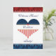 Coração patriótico americano de boas-vindas militar, cartão de convite de dupla face. Este é um convite maravilhoso para celebrar o regresso a casa de um familiar ou amigo de qualquer um dos cinco ramos das Forças Armadas dos Estados Unidos da América. Este cartão apresenta um design de coração com a bandeira americana patriótica da XG Designs NYC. As cores são em tributo americano de vermelho, branco e azul. Todo o texto é totalmente editável e pronto para você adicionar as informações da sua festa e o nome do convidado de honra. As cores do texto e os estilos de letra também podem ser editados para atender às suas necessidades e preferências especiais, simplesmente clicando em 'personalizar' nesta página. Oferecemos muitos outros desenhos e estilos de boas-vindas militar, cartões e convites de casamento militar, de aposentadoria e itens de presente em nossa loja.