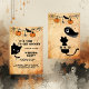 Estou entusiasmado em compartilhar um convite de festa de casamento de gato preto de halloween. A tipografia aparece em preto com diferentes tamanhos e opções. você pode mudar o fundo para suas preferências na ferramenta design. Tem uma aranha típica, a abóbora e a terra dos morcegos em preto e laranja. Ao redor da esquina está um gato preto sorrateiro procurando por um morcego. Você pode personalizá-lo com uma Festa de Introdução, Hhalloween, data, endereço e RSVP. A parte de trás do convite tem a mesma terra e um fantasma preto e bonito e um gato com espaço no meio para seus monogramas. Esta design vem com papel antigo de carvão retrorreflector bege que atinge o perfeito design. Torna-o mais assustador e velho. Hobinishop