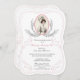 Volte aos tempos majestosos com este convite de festa de chá inspirado na era Regency. A suave borda rosa com floreios semelhantes a penas realça o retrato feminino retratado dentro de uma moldura floral simples.