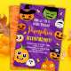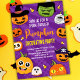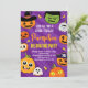 Crie seus próprios convites para festa de decoração de abóbora de Halloween.
