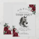 Convide seus convidados para uma sofisticada celebração "Derby & Drinks" com este convite artístico para uma festa do Kentucky Derby. Com um retrato de cavalo detalhado em estilo de desenho a lápis, rodeado por uma borda clássica de rosas vermelhas profundas, este design captura perfeitamente a mistura de tradição equestre e elegância social. O cabeçalho "Derby & Drinks" define um tom divertido e relaxado para uma tarde de mint juleps, coquetéis e vibrações de festa de jardim.