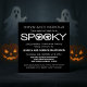 Festa simples e moderna de Tipografia Spooky Halloween Convide em preto e branco apresentando um design de texto legal com dois fantasmas caprichosos espiando a palavra "Spooky". Este convite de festas de na moda é perfeito para a sua festa de Halloween este ano e é fácil de personalizar com os detalhes da sua divertida festa. Clique no botão "Personalizar" para mover o elemento design, alterar as fontes ou as cores do texto e adicionar/remover texto adicional.