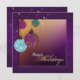 Celebre os feriados com este maravilhoso convite de feriados felizes. Apresenta ornamentos em três dimensões roxos, cor de rosa e dourados com ornamentado marrom e superior de ouro e espirais de faísca e um efeito de bola de disco. A borda de espiral roxa texturizada dá elegância ao design. Ele apresenta um plano de fundo de gradiente ouro, branco e roxo com um efeito de pôr do sol, fazer este um convite perfeito para uma festa de janto ou uma festa de fim de noite. Este design de convite oferece convites para a apresentação de propostas profissionais a um custo barato.