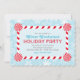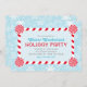 Winter wonderland temed party convite para festas de feriado apresenta um quadro vermelho de menta doce de cana e o fundo tem um padrão de flocos de neve. Cor azul-gelo, turquesa, vermelha e branca.