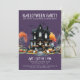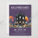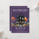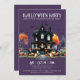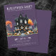 Bem-vindos a sua festa de fantasia de Halloween com este convite assustador, mas simples. O design apresenta um fundo roxo escuro com um esquema de cores preto e branco, combinado com uma mistura de ornamentado e tipografia de fontes serif. No centro do convite encontra-se uma casa assombrada de preto, realçada com pop de laranja de abóboras, jack-o-lanternas e árvores inquietas. Fantasmas e morcegos divertidos flutuam para completar a vibração divertida e assustadora. A fonte tem uma sensação vintage, inspirada em grunge, dando ao convite um olhar nostálgico e antigo. Este convite para festa de Halloween é perfeito para dar o tom para uma noite de diversão assustadora. Bonita Vintage Gótica Fingindo Festa de Halloween. Disponível como um convite impresso ou como um convite digital para download que você pode enviar por e-mail ou que tenha impresso localmente!