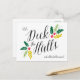 Celebre a temporada e convide os convidados para a sua festa com um simples convite de cartão postal com texto fácil de editar e um gráfico em estilo caligráfico com o texto "deck the halls" acentuado por ramalhetes desenhados à mão de folhas festivas, frutas e ramalhetes.