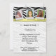 Este convite de festas esfolado de zebra é acentuado por uma fita amarela. Três quadros de fotografias completam o olhar. Carregue suas próprias fotografias e personalize o texto neste convite de tendência. Este cartão é mostrado como um convite de aniversário, no entanto, ele também seria um design ideal para uma festa de aniversário, chá de panela, chá de casamento, ou qualquer outra ocasião. Problemas para personalizar este cartão? Sinta-se à vontade para entrar em contato com esta loja e nós forneceremos assistência sem custo adicional para você.:: Disponível em uma variedade de cores e pode ser personalizado para ajustado em qualquer ocasião:: Este design está protegido por direitos autorais e não pode ser copiado nem reproduzido de nenhuma maneira.