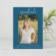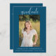 Este elegante convite fotográfico será a forma perfeita de anunciar a sua festa de formatura. Este convite apresenta um fundo azul. Adicione uma foto e personalize o texto na frente e atrás para incluir todos os detalhes da sua festa de formatura. Este convite está disponível em diversas cores. Visite minha coleção de graduações para ver todas as opções.