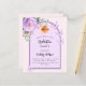 Um fundo cor-de-rosa pincelado com um arco cor roxo e violeta. Decorados com um verde floral, rosa, de cor aquosa, de cor verde, de eucalipto verde e borboletas. Personalize e adicione um nome e detalhes da parte. Traseira: cor de fundo cor-de-rosa pincelada. 1 folha = 1 convite impresso de borda a borda.