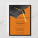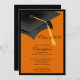 Comece seu evento com nosso boné de formando preto de tendências e na moda com um convite de festa de formatura de fundo de borda preta e laranja. Convite perfeito para a formatura de um segundo grau ou formandos. Basta preencher suas informações adicionar sua foto e você está pronto para ir. Visite nosso compro em www.celebrateitgraduations.com para uma grande variedade de convites para formatura! gráficos ©BELGA_Dodles