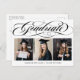 Cartão-postal de Festa de formatura de Colagem de Fotos Elegante. Design apresenta o script de tipografia '' formando'', 3 fotos do formando, nome, classe de na frente e sua mensagem no verso.
