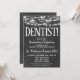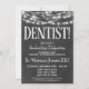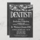 Um divertido convite à festa de formatura de um dentista preto e branco, com luzes brilhantes no topo.
