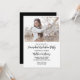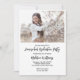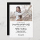 Cartão de convite à festa de formatura da escola doméstica preto e branco minimalista. Bonito texto de script com letra manual para a Festa de formatura e o nome da escola doméstica. Adicione uma foto especial do formando, além dos detalhes da festa. Perfeito em enviar para a família e amigos para celebrar a formatura na escola. Veja a coordenação de itens no nosso compro, Encantado Finch.