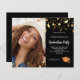 Adicione sua própria foto vertical do formando. Uma cor de fundo preto clássica, decorada com estrelas douradas falsas. Personalize e adicione um nome e detalhes da parte.