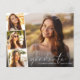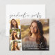 Anúncio de graduação e convite de festas elegante e amigável, com a foto do formando sobreposta com uma faixa de três fotos quadradas menores, "formando" em uma escritura branca moderna e seu nome e ano de aula em uma tipografia branca simples. Adicione os detalhes da parte no verso.