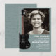 Convite para a graduação de música com modelo de foto e imagem de violão. Adicione sua foto ao topo do papel de 4 x 6 polegadas com modelos de texto branco embaixo. Uma guitarra preta e elétrica enfeita a borda dos cartões verdes turquesas. Pode ser para universitários ou estudantes segundos graus se formando em música.