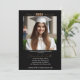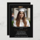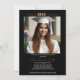 Preto com anúncio e convite de festas personalizados brancos de graduação.