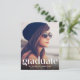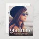 Um anúncio de graduação e convite de festas amigável em orçamento e apresentando sua foto de formando, "Formando" em tipografia branca moderna com linhas únicas e seu nome, ano escolar e de aula. No verso, adicione os detalhes da parte.
