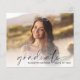 Elegante convite à festa de formatura, com orçamento favorável, que inclui a fotografia do formando sobreposta a um "formando" numa escrita moderna e o seu nome e ano de aula numa fotografia simples. No verso, adicione os detalhes da festa de formatura.