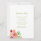 Este convite para festa de formatura floral de aquarela tem um esquema de cor rosa, coral e verde. Você pode adicionar uma foto do formando à frente do convite e também pode personalizar a classe do ano, o nome do formando e a escola de onde eles estão se formando. A parte de trás tem o mesmo design floral na parte inferior esquerda com o texto da parte no meio que você pode personalizar facilmente.